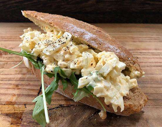 broodje met vers bereide eiersalade, pesto & bieslook